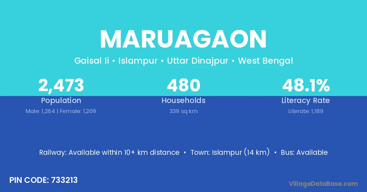 Islampur (14 km) is the nearest town to Maruagaon village for major economic activities and is located approximately 14 km away.