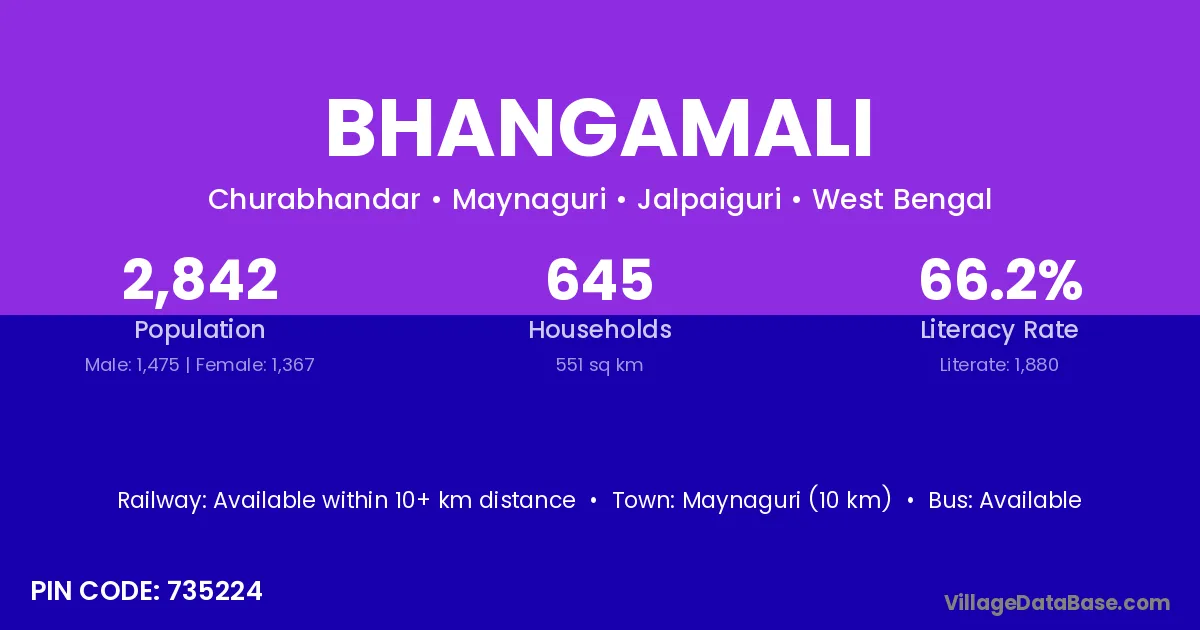 Islampur (20 km) is the nearest town to Bhangamali village for major economic activities and is located approximately 20 km away.