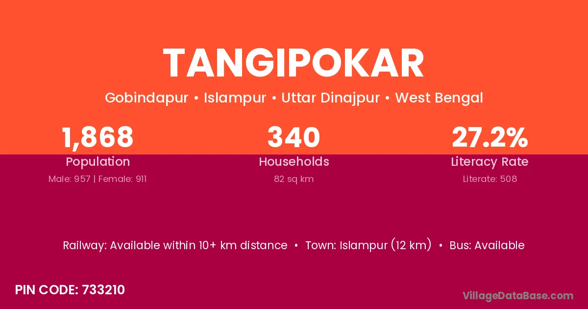 Tangipokar village is located in the Islampur Subdivision of the Uttar Dinajpur district in West Bengal.