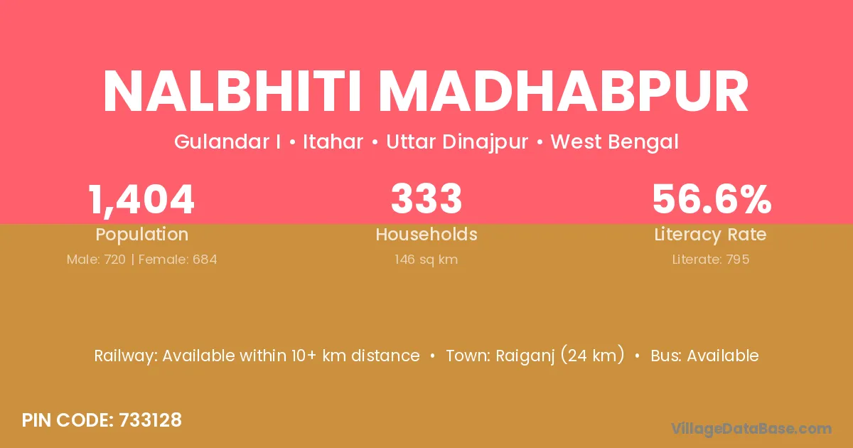 Raiganj (24 km) is the nearest town to Nalbhiti Madhabpur village for major economic activities and is located approximately 24 km away.
