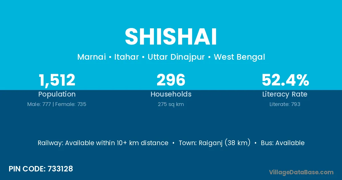 Raiganj (38 km) is the nearest town to Shishai village for major economic activities and is located approximately 38 km away.