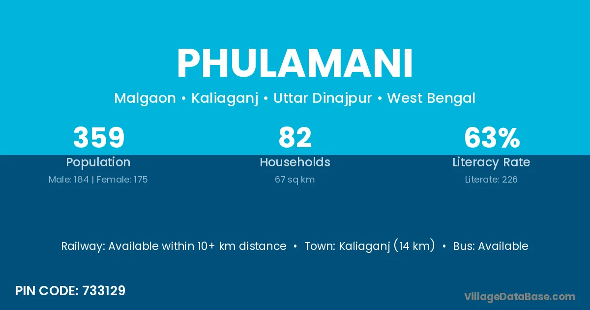 Kaliaganj (14 km) is the nearest town to Phulamani village for major economic activities and is located approximately 14 km away.