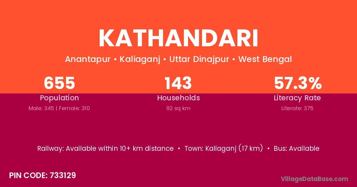 Kaliaganj (17 km) is the nearest town to Kathandari village for major economic activities and is located approximately 17 km away.
