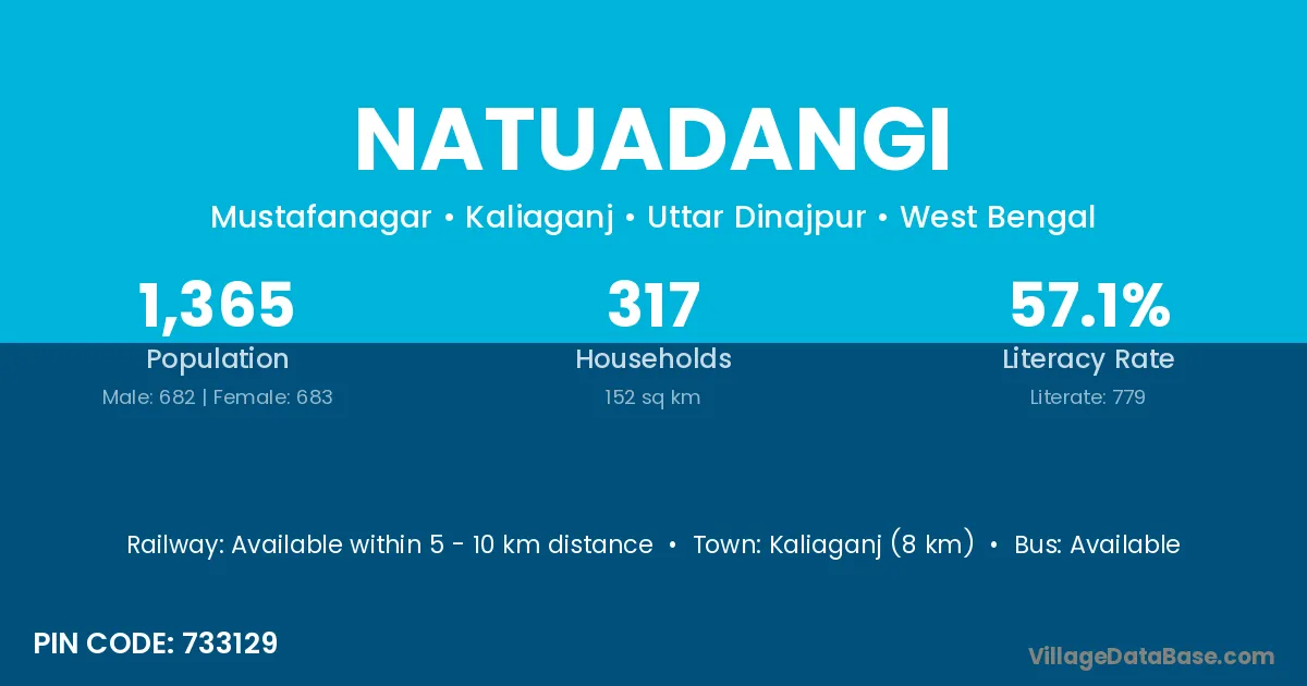 Kaliaganj (8 km) is the nearest town to Natuadangi village for major economic activities and is located approximately 8 km away.