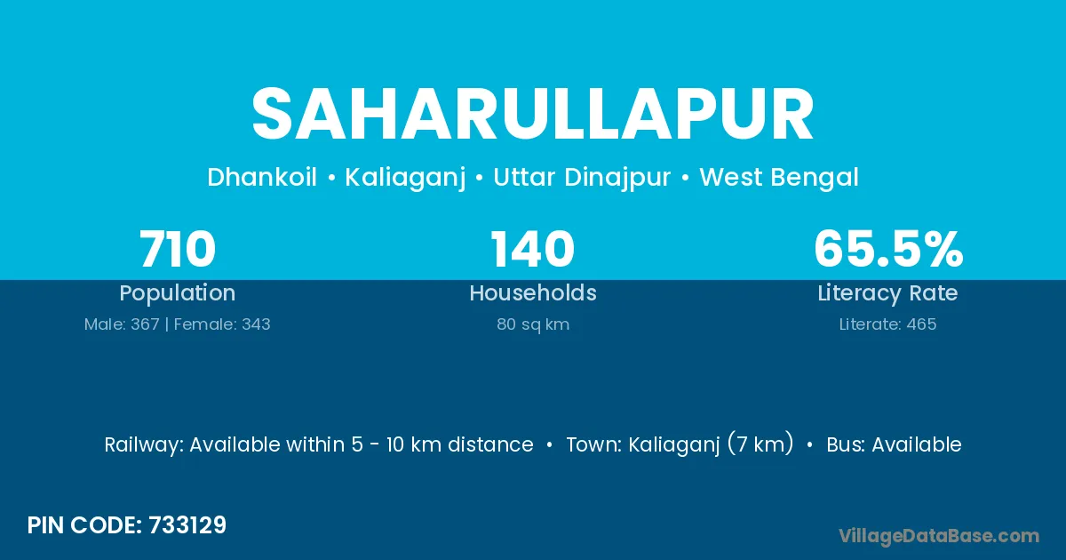 Kaliaganj (7 km) is the nearest town to Saharullapur village for major economic activities and is located approximately 7 km away.