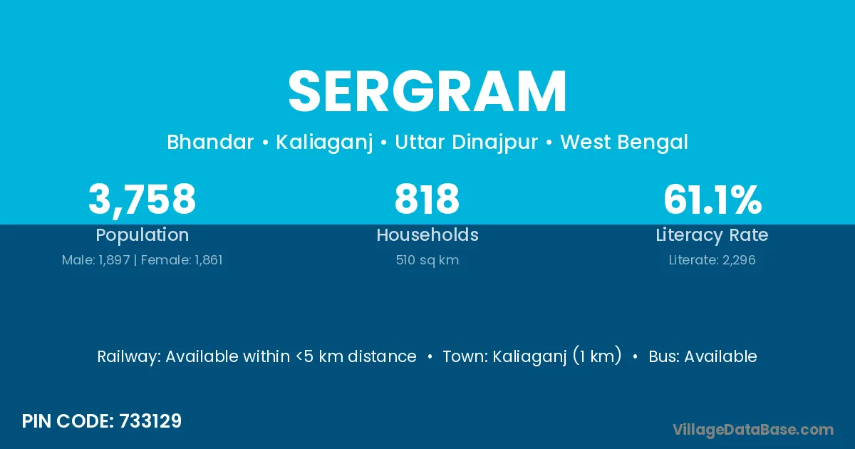 Kaliaganj (1 km) is the nearest town to Sergram village for major economic activities and is located approximately 1 km away.