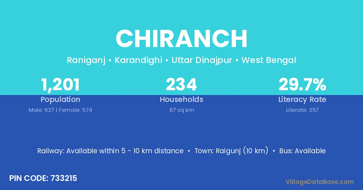 Raigunj (10 km) is the nearest town to Chiranch village for major economic activities and is located approximately 10 km away.