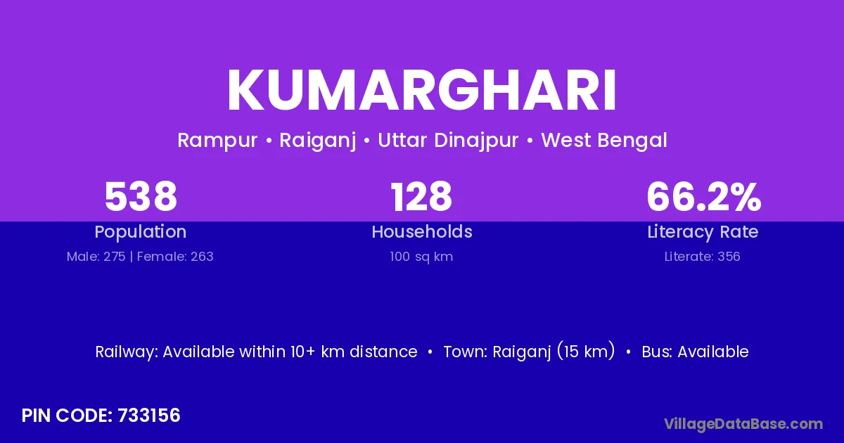 Raiganj (15 km) is the nearest town to Kumarghari village for major economic activities and is located approximately 15 km away.