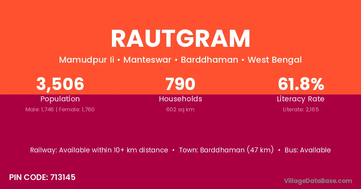 According to Census 2011 information, the village code of Rautgram village is 733156.