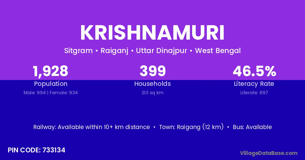 According to Census 2011 information, the village code of Krishnamuri village is 733134.