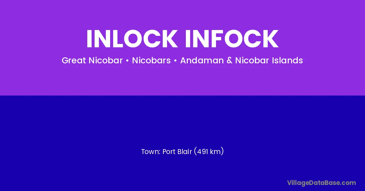 Port Blair (491 km) is the nearest town to Inlock Infock village for major economic activities and is located approximately 491 km away.