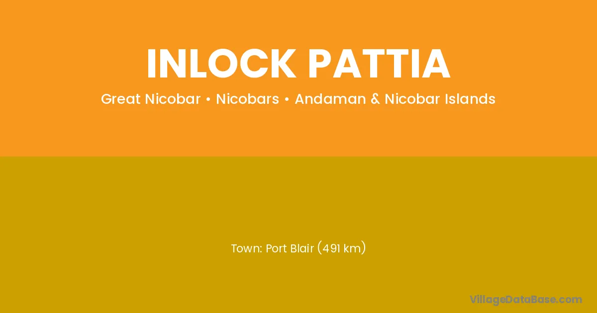 Port Blair (491 km) is the nearest town to Inlock Pattia village for major economic activities and is located approximately 491 km away.