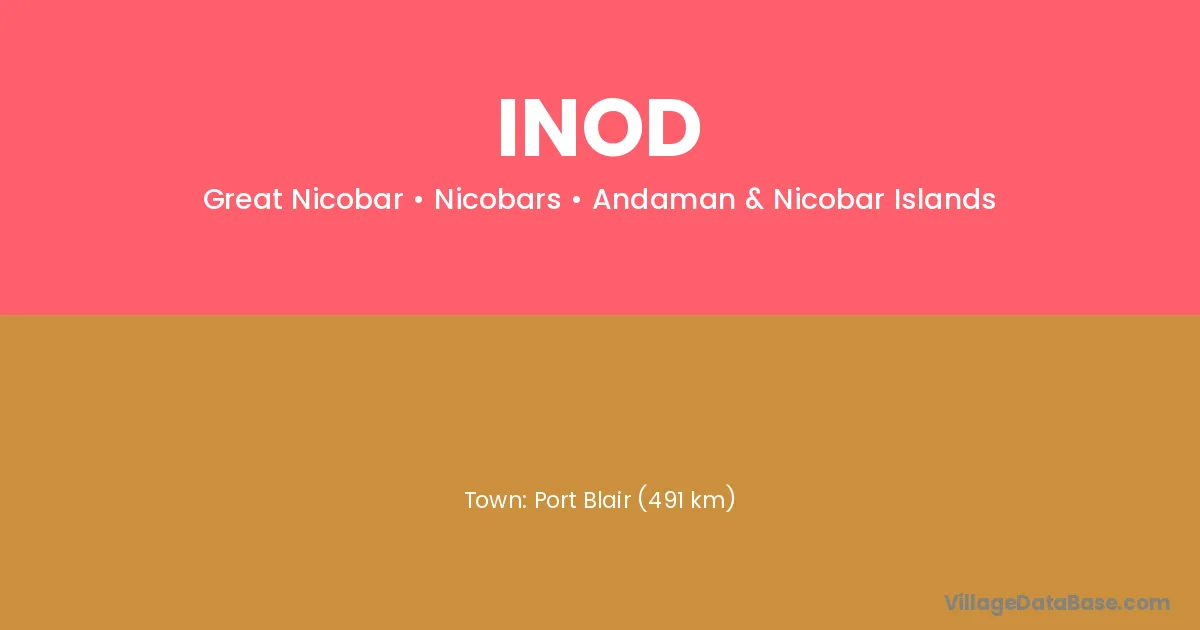 Port Blair (491 km) is the nearest town to Inod village for major economic activities and is located approximately 491 km away.