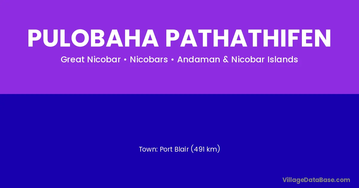 Port Blair (491 km) is the nearest town to Pulobaha Pathathifen village for major economic activities and is located approximately 491 km away.