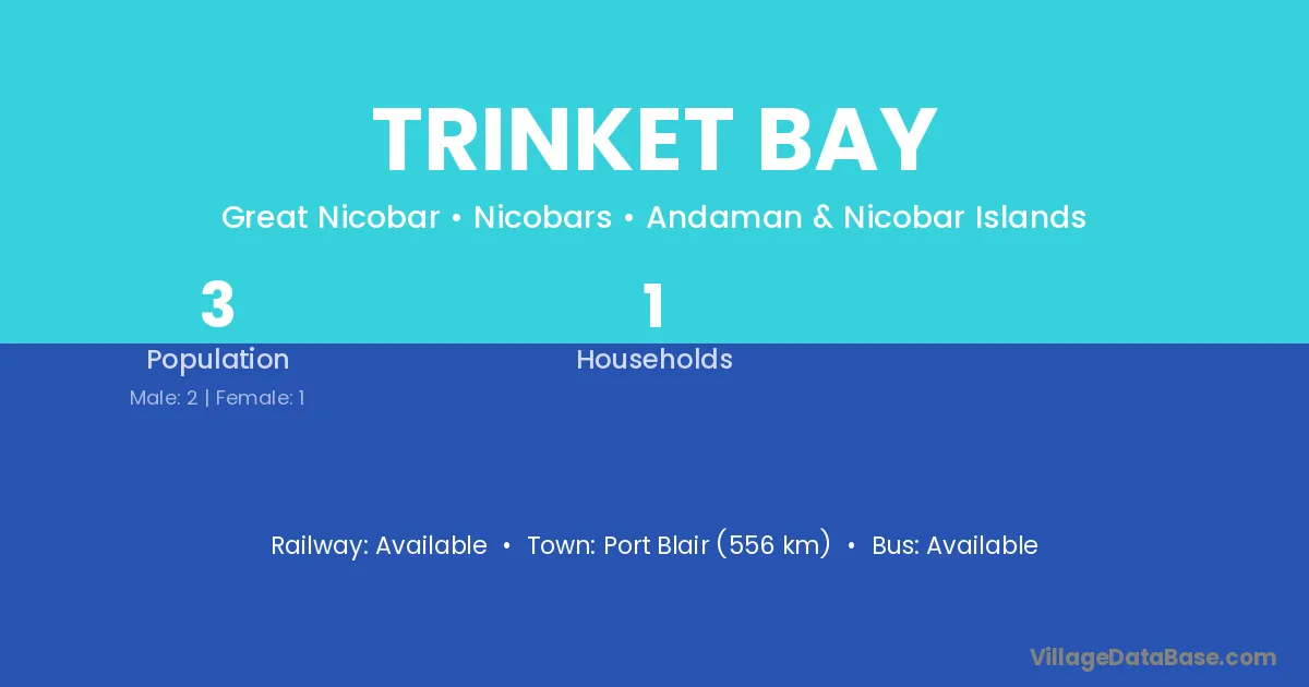 Trinket Bay village has a total population of 3 people, of which 2 are males and 1 are females.