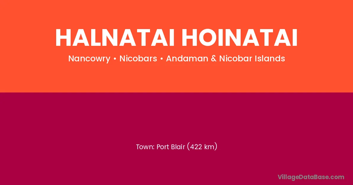 Port Blair (422 km) is the nearest town to Halnatai Hoinatai village for major economic activities and is located approximately 422 km away.