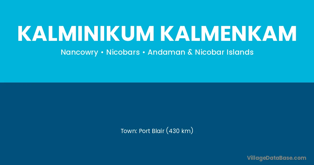 Port Blair (430 km) is the nearest town to Kalminikum Kalmenkam village for major economic activities and is located approximately 430 km away.