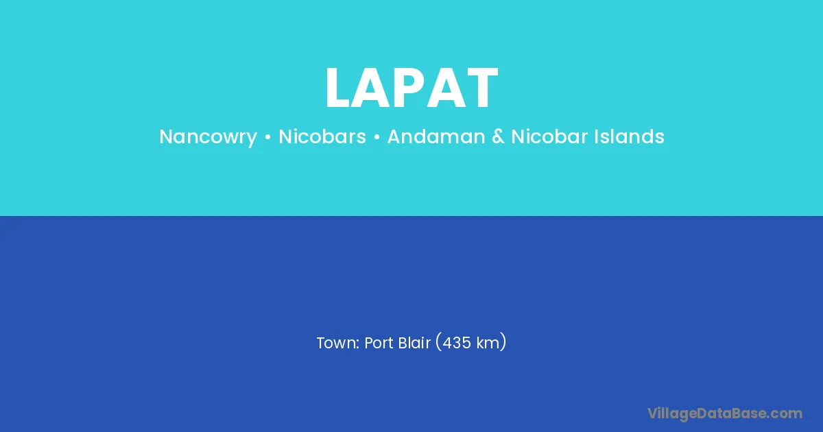 Port Blair (435 km) is the nearest town to Lapat village for major economic activities and is located approximately 435 km away.