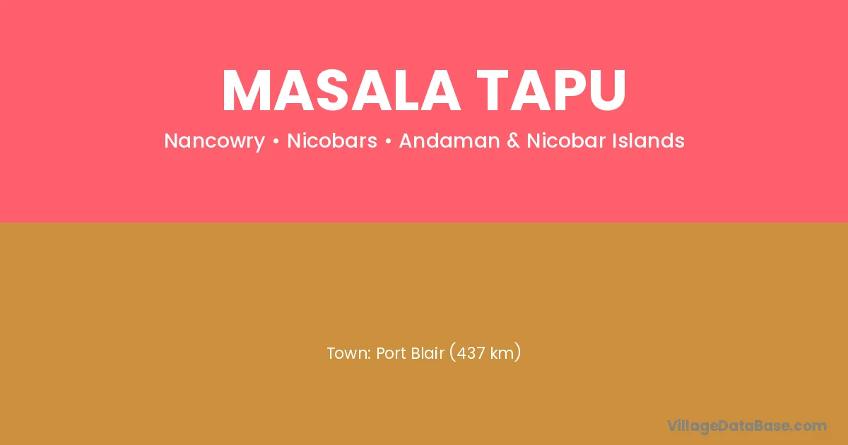 Port Blair (437 km) is the nearest town to Masala Tapu village for major economic activities and is located approximately 437 km away.