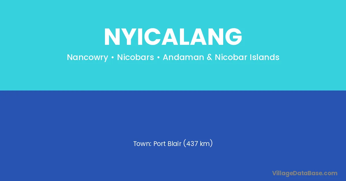 Port Blair (437 km) is the nearest town to Nyicalang village for major economic activities and is located approximately 437 km away.