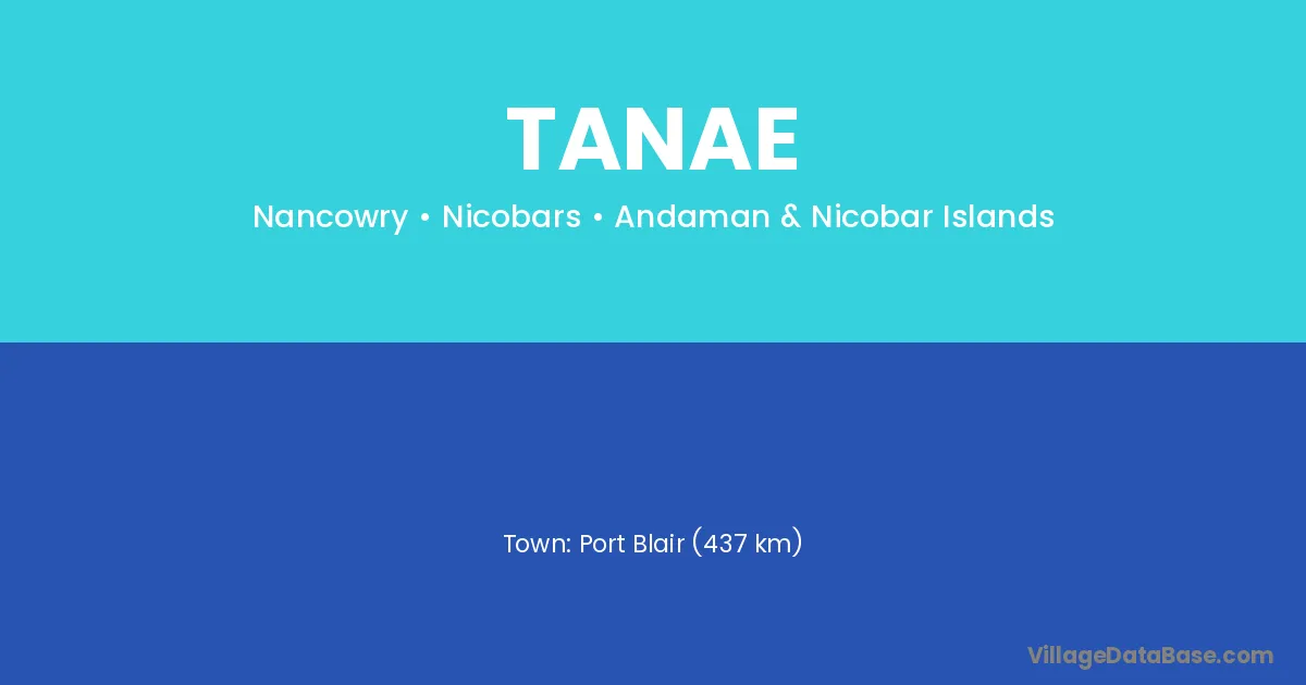 Port Blair (437 km) is the nearest town to Tanae village for major economic activities and is located approximately 437 km away.