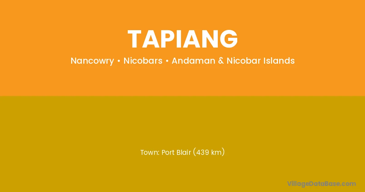Port Blair (439 km) is the nearest town to Tapiang village for major economic activities and is located approximately 439 km away.