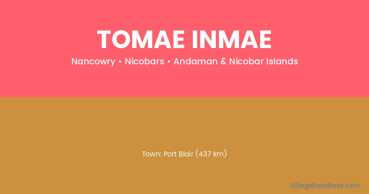 Port Blair (437 km) is the nearest town to Tomae Inmae village for major economic activities and is located approximately 437 km away.