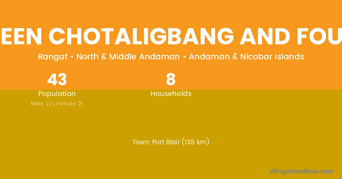 Between Chotaligbang And Foul Bay village has a total population of 43 people, of which 22 are males and 21 are females.