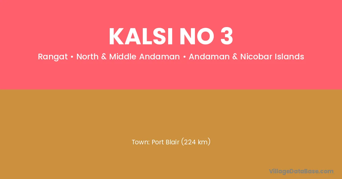 Port Blair (224 km) is the nearest town to Kalsi No 3 village for major economic activities and is located approximately 224 km away.