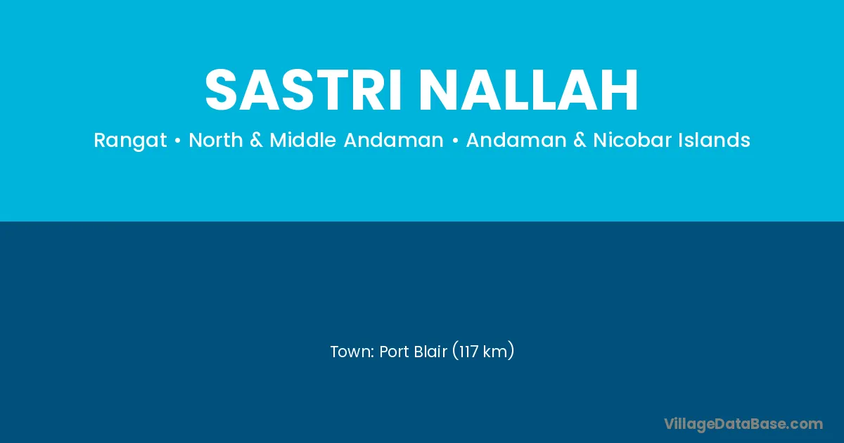 Port Blair (117 km) is the nearest town to Sastri Nallah village for major economic activities and is located approximately 117 km away.