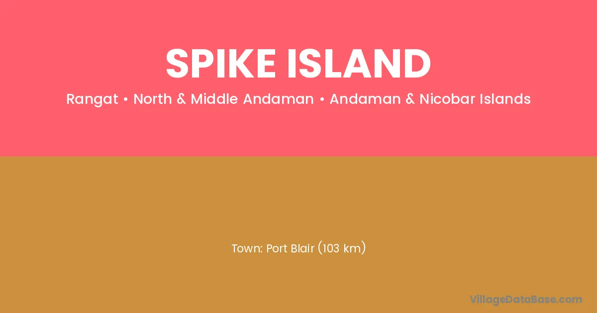 Port Blair (103 km) is the nearest town to Spike Island village for major economic activities and is located approximately 103 km away.