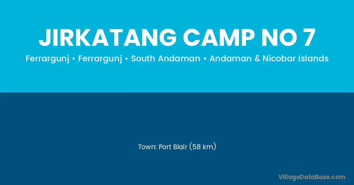 Port Blair (58 km) is the nearest town to Jirkatang Camp No 7 village for major economic activities and is located approximately 58 km away.