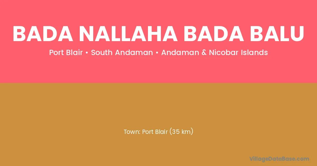 Port Blair (35 km) is the nearest town to Bada Nallaha Bada Balu village for major economic activities and is located approximately 35 km away.