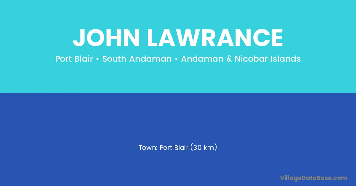 Port Blair (30 km) is the nearest town to John Lawrance village for major economic activities and is located approximately 30 km away.
