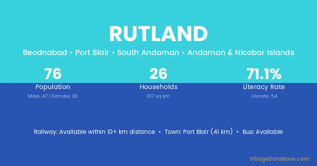 Port Blair (41 km) is the nearest town to Rutland village for major economic activities and is located approximately 41 km away.