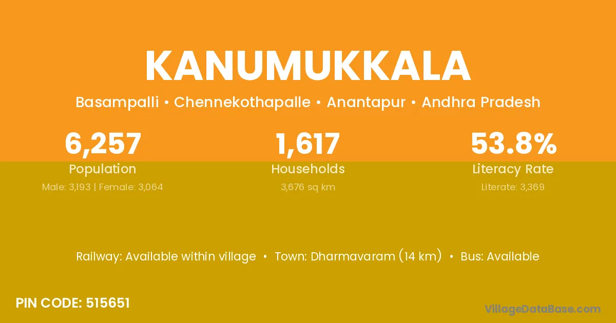 Dharmavaram (14 km) is the nearest town to Kanumukkala village for major economic activities and is located approximately 14 km away.