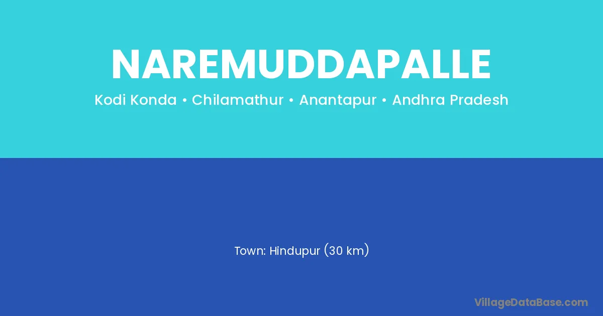 Hindupur (30 km) is the nearest town to Naremuddapalle village for major economic activities and is located approximately 30 km away.