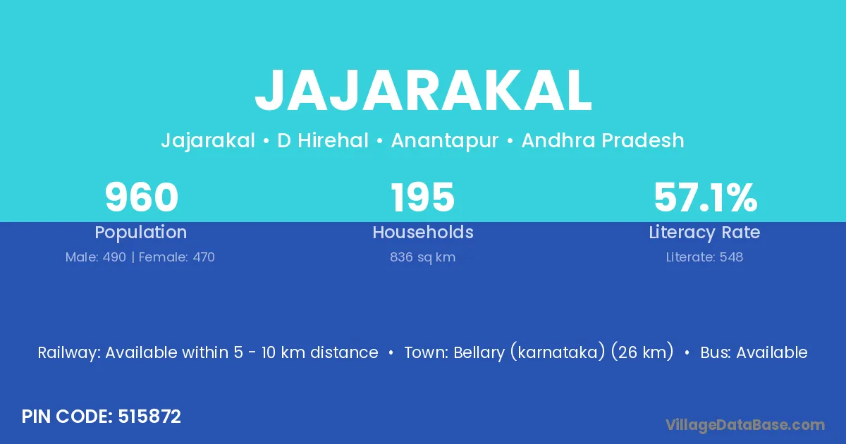 Jajarakal village has a total population of 960 people, of which 490 are males and 470 are females.