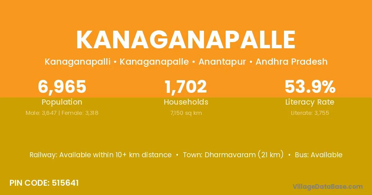 Dharmavaram (21 km) is the nearest town to Kanaganapalle village for major economic activities and is located approximately 21 km away.