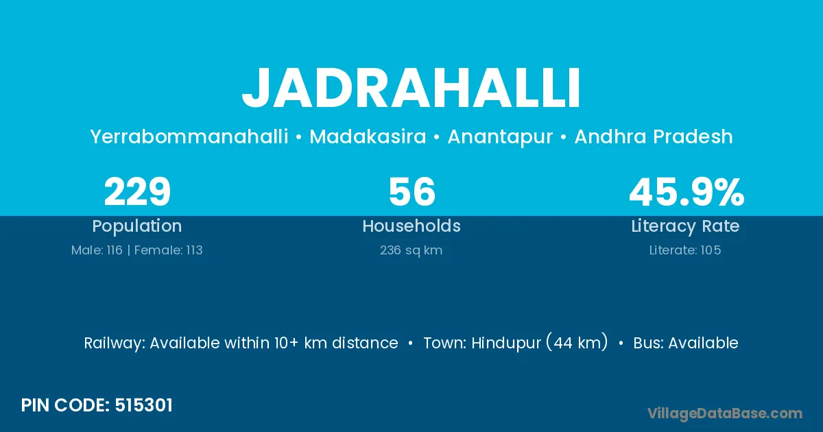 According to Census 2011 information, the village code of Jadrahalli village is 515301.