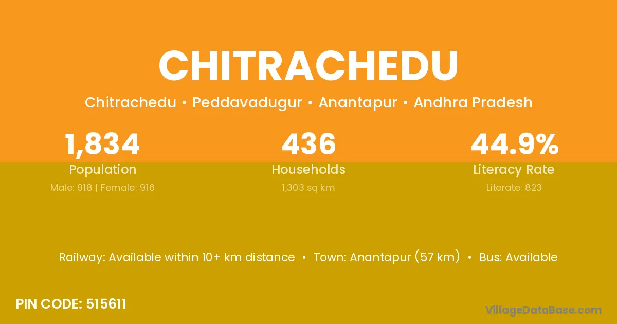 Chitrachedu village has a total population of 1,834 people, of which 918 are males and 916 are females.