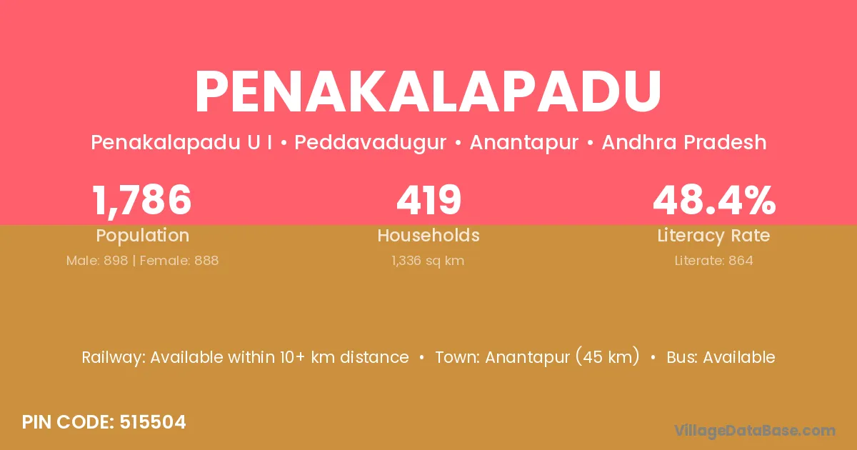 Anantapur (45 km) is the nearest town to Penakalapadu village for major economic activities and is located approximately 45 km away.