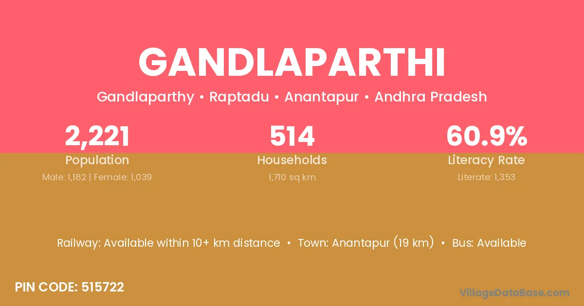 Anantapur (19 km) is the nearest town to Gandlaparthi village for major economic activities and is located approximately 19 km away.