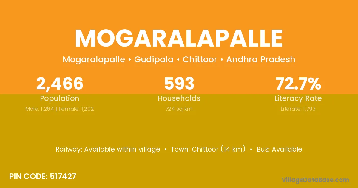 Chittoor (14 km) is the nearest town to Mogaralapalle village for major economic activities and is located approximately 14 km away.