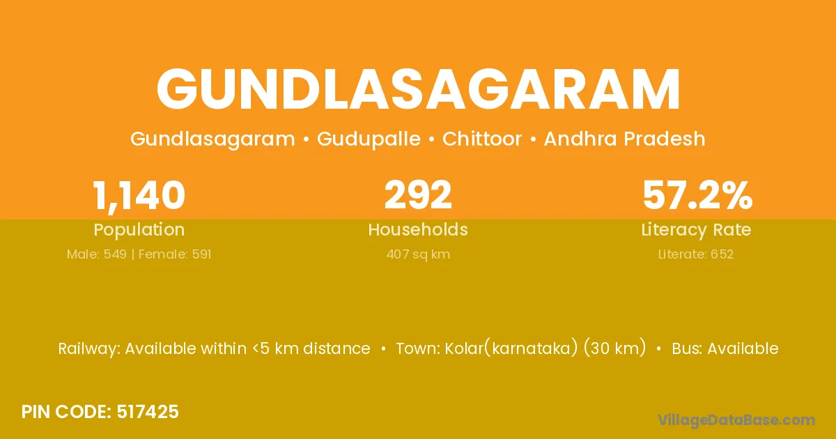 Kolar(karnataka) (30 km) is the nearest town to Gundlasagaram village for major economic activities and is located approximately 30 km away.