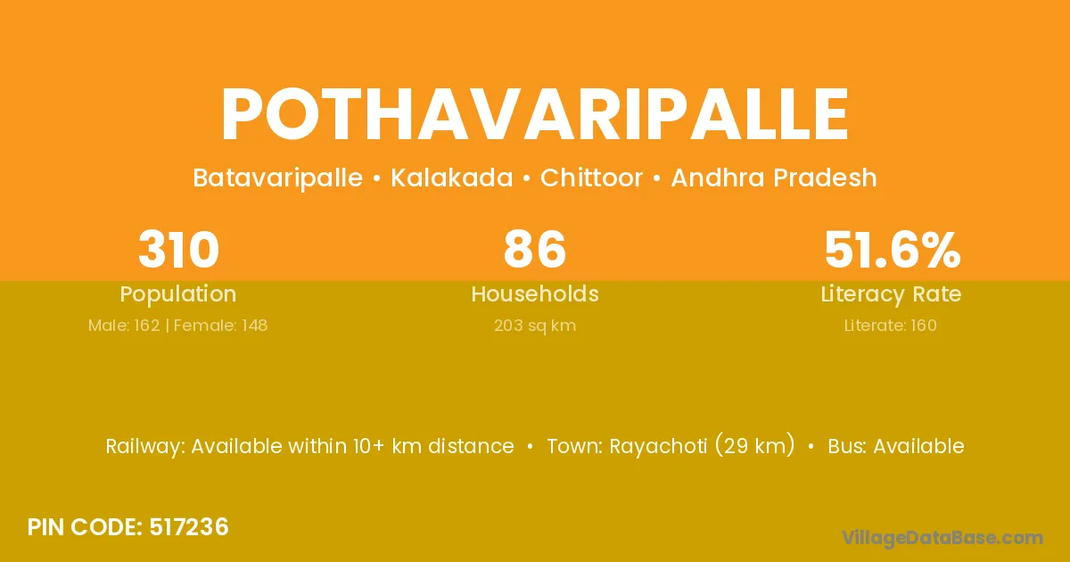 According to Census 2011 information, the village code of Pothavaripalle village is 517236.