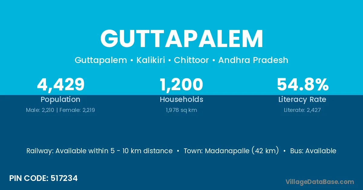 Madanapalle (42 km) is the nearest town to Guttapalem village for major economic activities and is located approximately 42 km away.