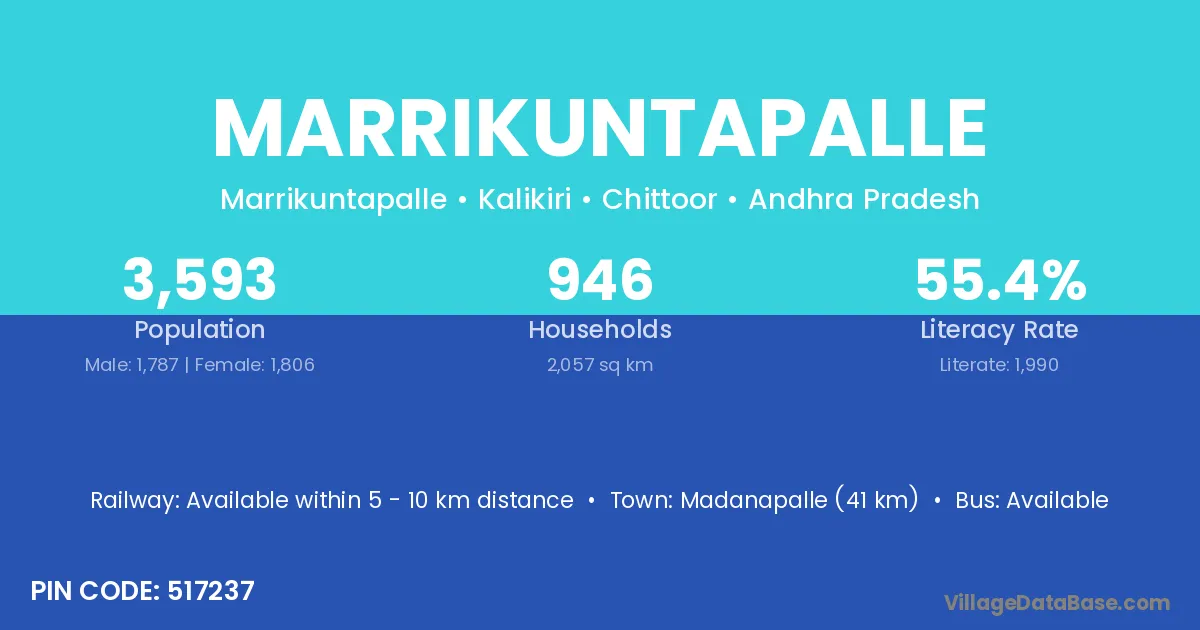 Madanapalle (41 km) is the nearest town to Marrikuntapalle village for major economic activities and is located approximately 41 km away.