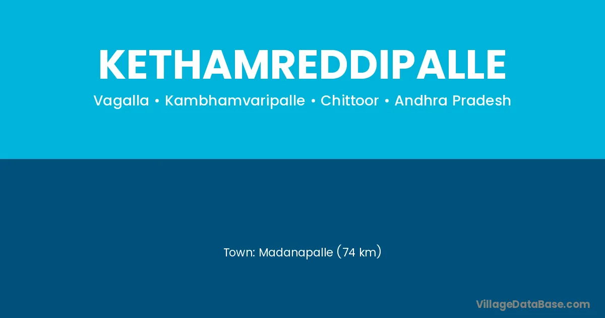 Madanapalle (74 km) is the nearest town to Kethamreddipalle village for major economic activities and is located approximately 74 km away.