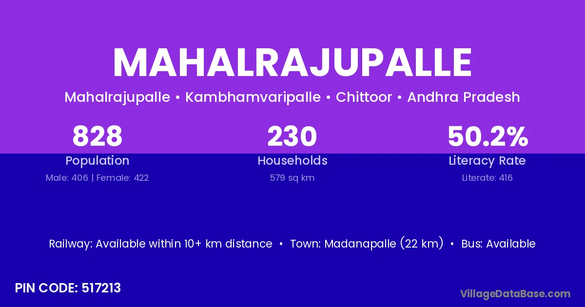 According to Census 2011 information, the village code of Mahalrajupalle village is 517213.